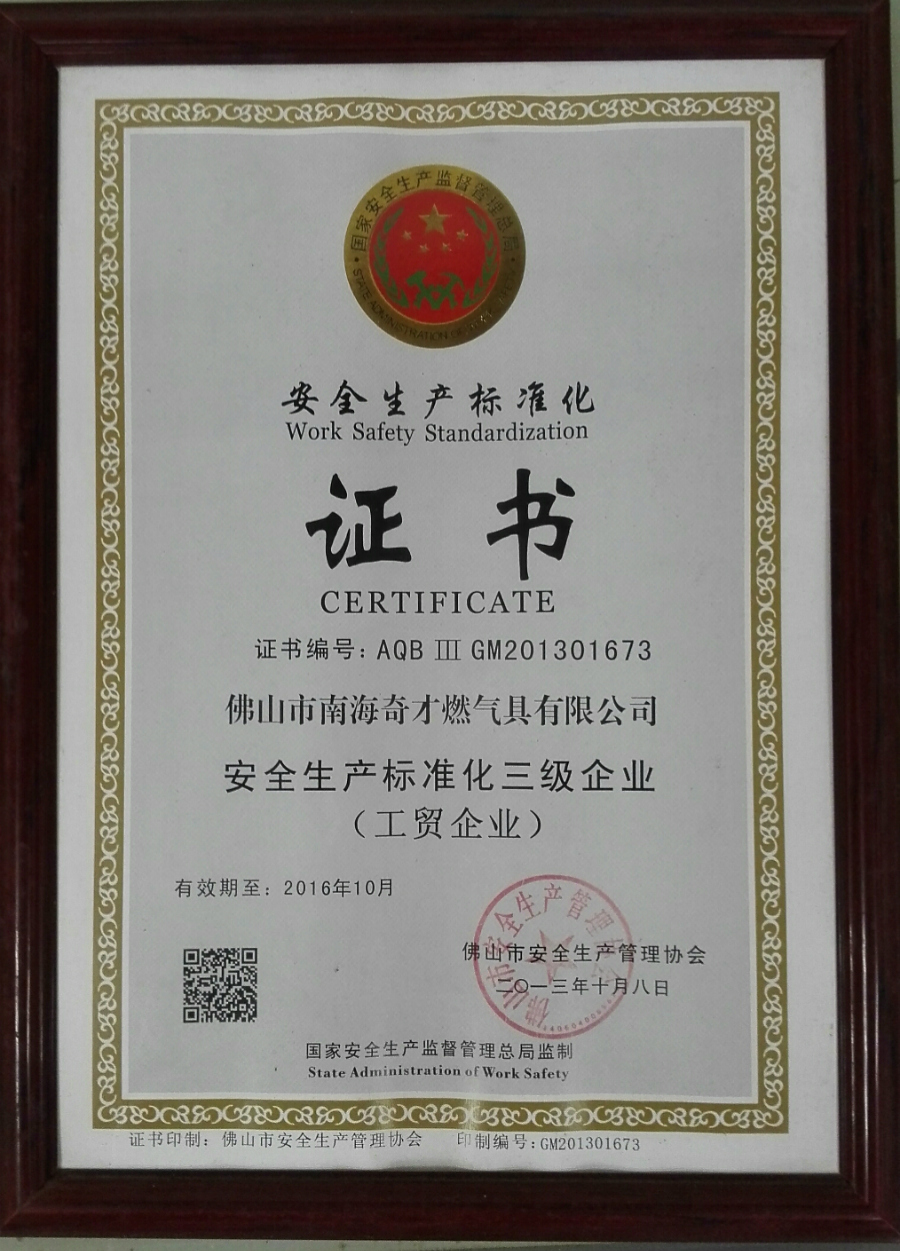 主頁 > 企業(yè)榮譽 > 企業(yè)榮譽 > 安全生產(chǎn)標(biāo)準(zhǔn)化三級證書